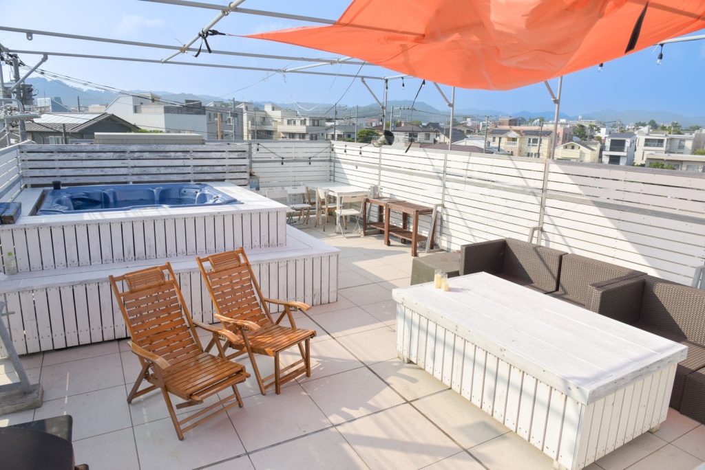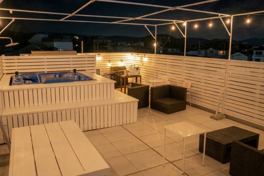 由比ヶ浜の海を望む、開放的な屋上サウナエリア。