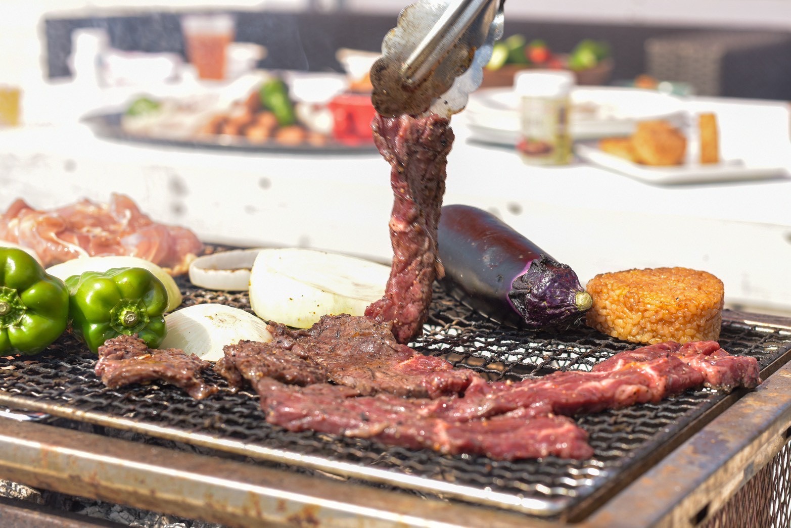 ◎Beef shoulder steak, pork belly, BBQ chicken, sausage, grilled hormone with miso ◎Colorful grilled vegetables ◎Salsa chips & stick salad French fries, grilled cheese curry